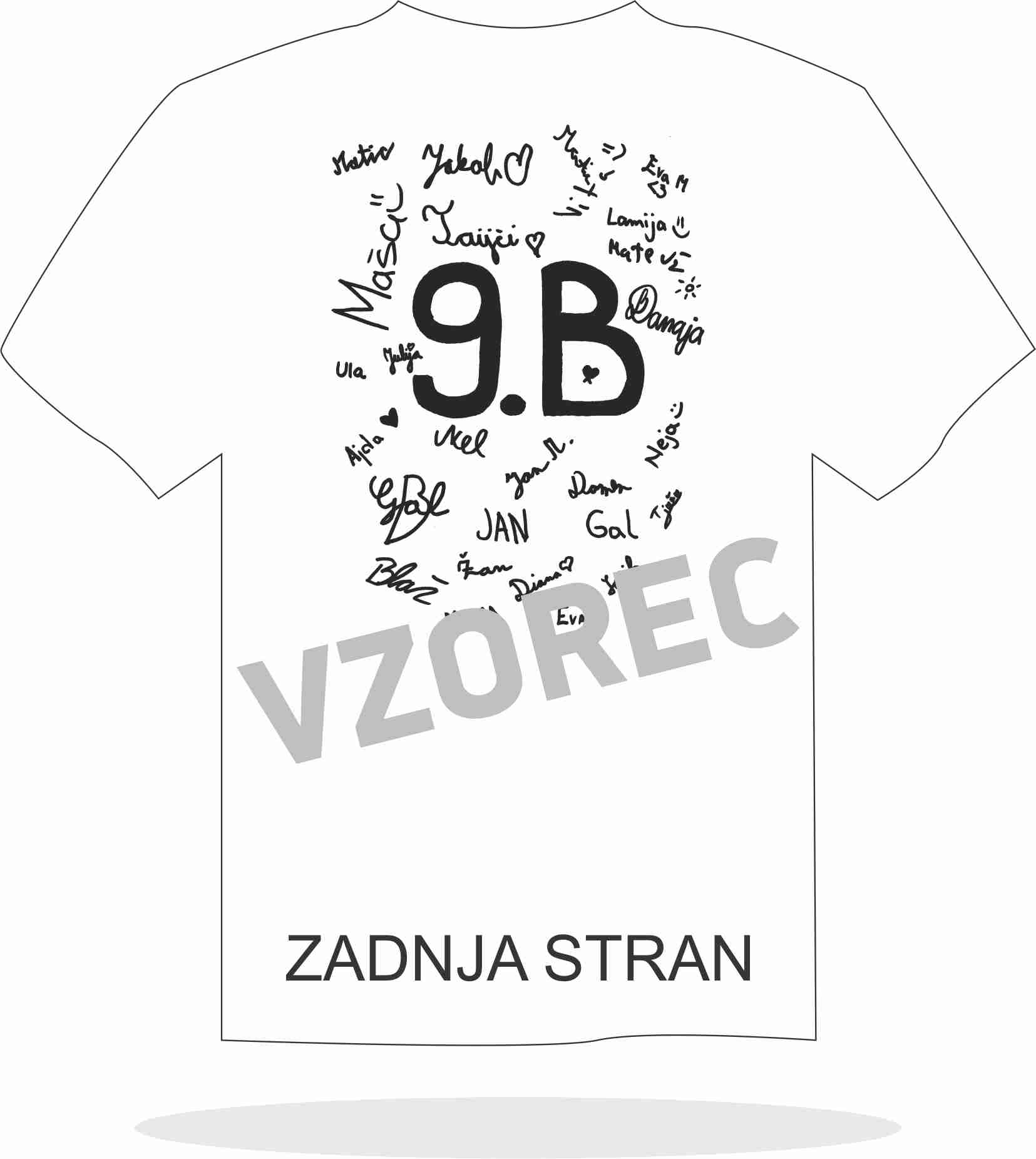Motivi se tiskajo na sprednjo stran majice, na zadnjo stran majice se natisnejo podpisi.
