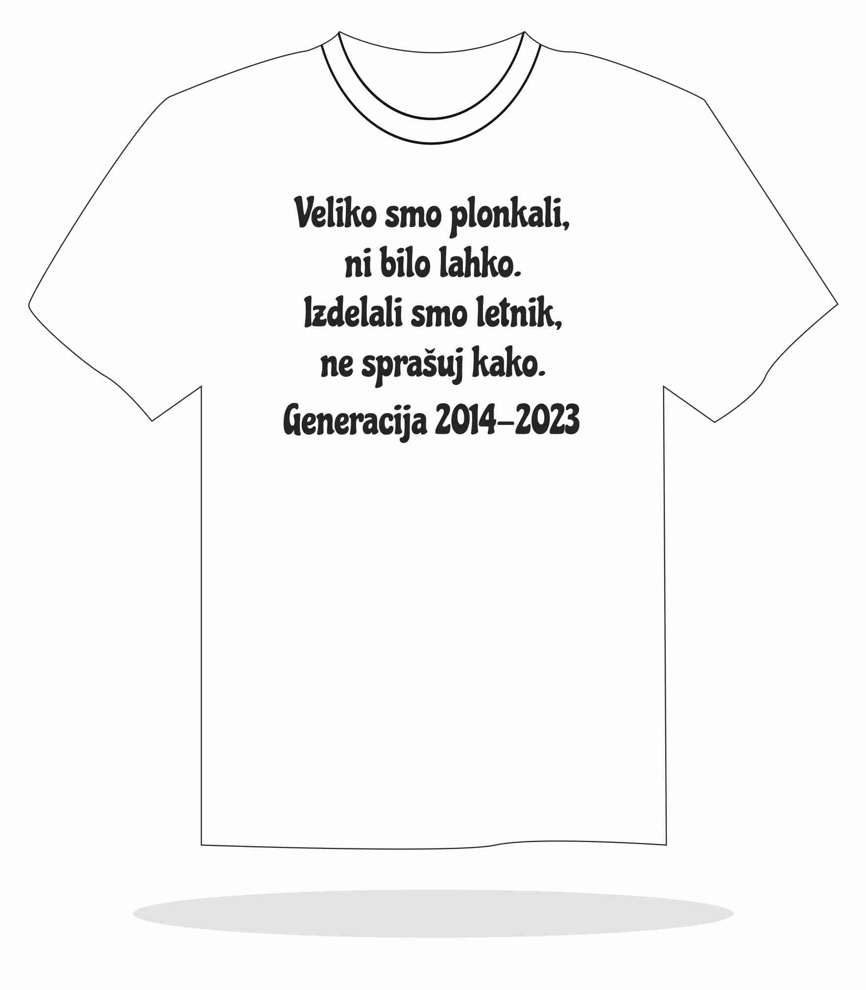Motivi se tiskajo na sprednjo stran majice, na zadnjo stran majice se natisnejo podpisi.
