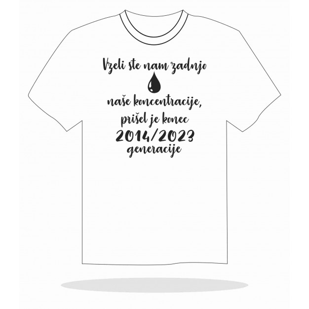 6. Za vas pripravimo tudi majice z vašimi idejami, ki vam jih pomagamo oblikovati. Ponujene ideje lahko na vašo željo tudi spremenimo, tako da prilagodimo barvo tiska barvi majice ali pa spremenimo recimo letnico ali ime, ki sta del grafike.